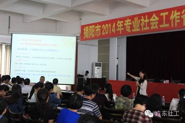 林小彭副局长在开班动员上指出,揭阳市在加强社会工作人才队伍建设方面已出台相关政策,开展形式多样的社会工作服务对于揭阳社会工作发展意义重大。揭阳市的社会工作现在还处在起步阶段,但在社工委的积极引导下,相信将会取得更好的发展。阎安副会长以“广东社会工作发展与社区工作实务探索”为题进行主题演讲,从宏观上介绍了社会工作的相关知识及社会工作在中国的发展现状、广东社会工作发展的主要经验、社区工作方法及社会工作在广州市社区服务中的实际经验。