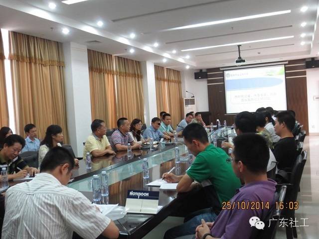 分享结束后,宣讲团应揭阳职业技术学院邀请参加了揭阳职业技术学院社工研讨会。揭阳职业技术学院毛月云老师介绍了学院社会工作专业的建立与发展情况、人才培养方案及专业发展计划,并指出学院在发展社会工作专业中遇到了资金支持不足、学生实训实习基地缺乏、社工教学管理缺乏经验等困难。揭阳市民政局林小彭副局长回应了揭阳学院提出的相关困难,指出社会工作的发展需要多方合力、共同推进。阎安老师就广东工业大学开办社会工作专业以来的经验与揭阳学院进行了分享,指出社会工作的发展需要教育先行,在培养学生方面一定要有计划,目前揭阳学院在社会工作专业发展上面临着很好的机会,相关领导非常重视,学院要利用好这些优势。